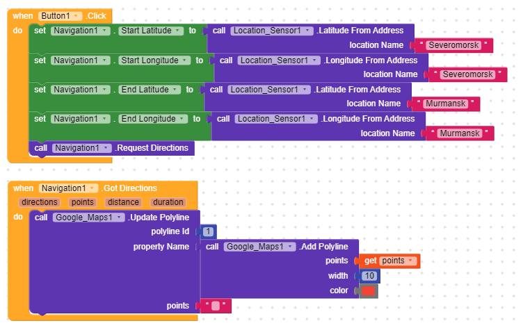 Hello, I want to get a route between two points. For the navigation component, I am using the openrouteservice API. When I click the route button, an error occurs (Runtime Error com.google.appinventors.runtime.util.GeometryUtil). In my other navigation app, I use OSM maps and everything works well.. I want to understand if this error is for everyone or only for me.