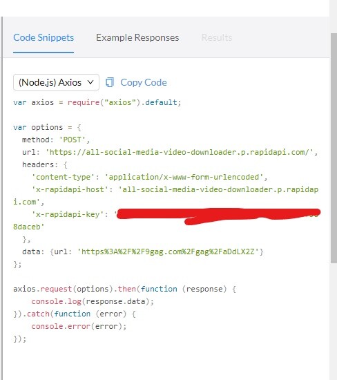 Change your URL to https://all-social-media-video-downloader.p.rapidapi.com/