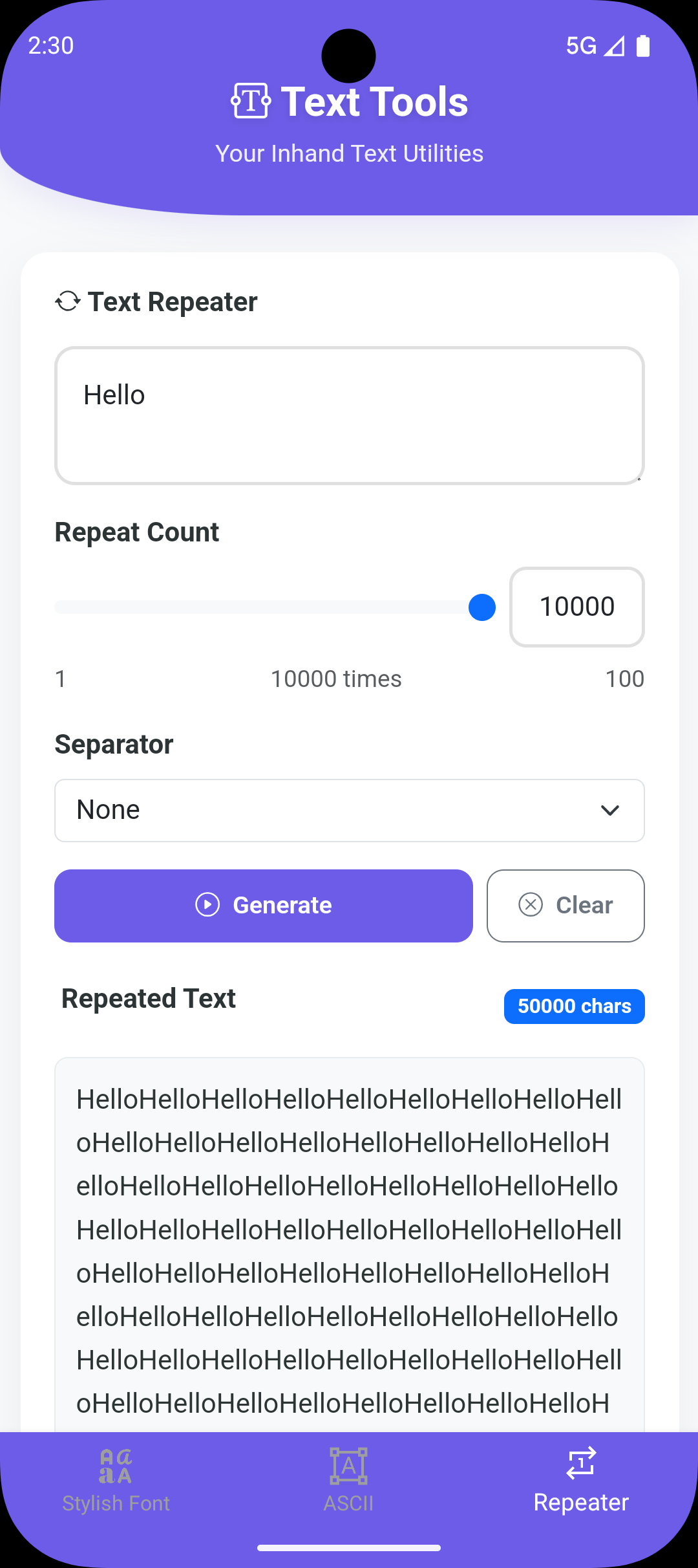- Text Repeater : Repeat text with custom count and separators