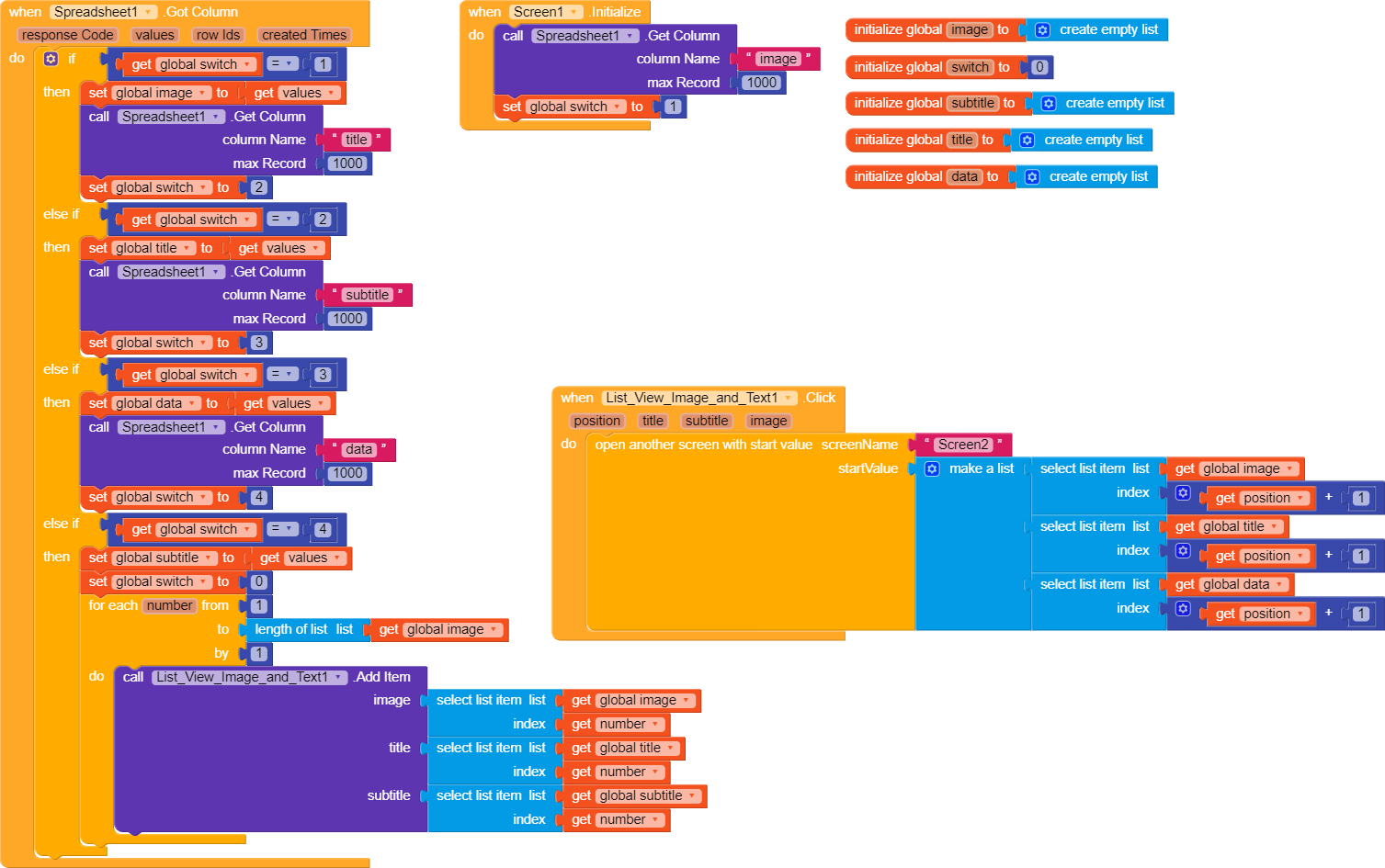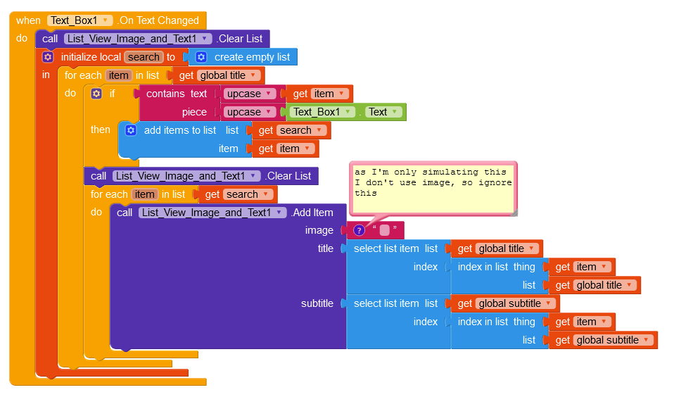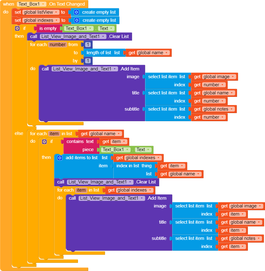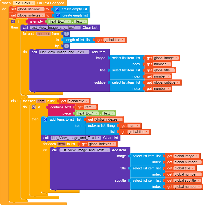 this blocks are used to call spreadsheet data. And i think filter bar or search bar blocks are Missing. So please show me your search Blocks. as it will complete my App.