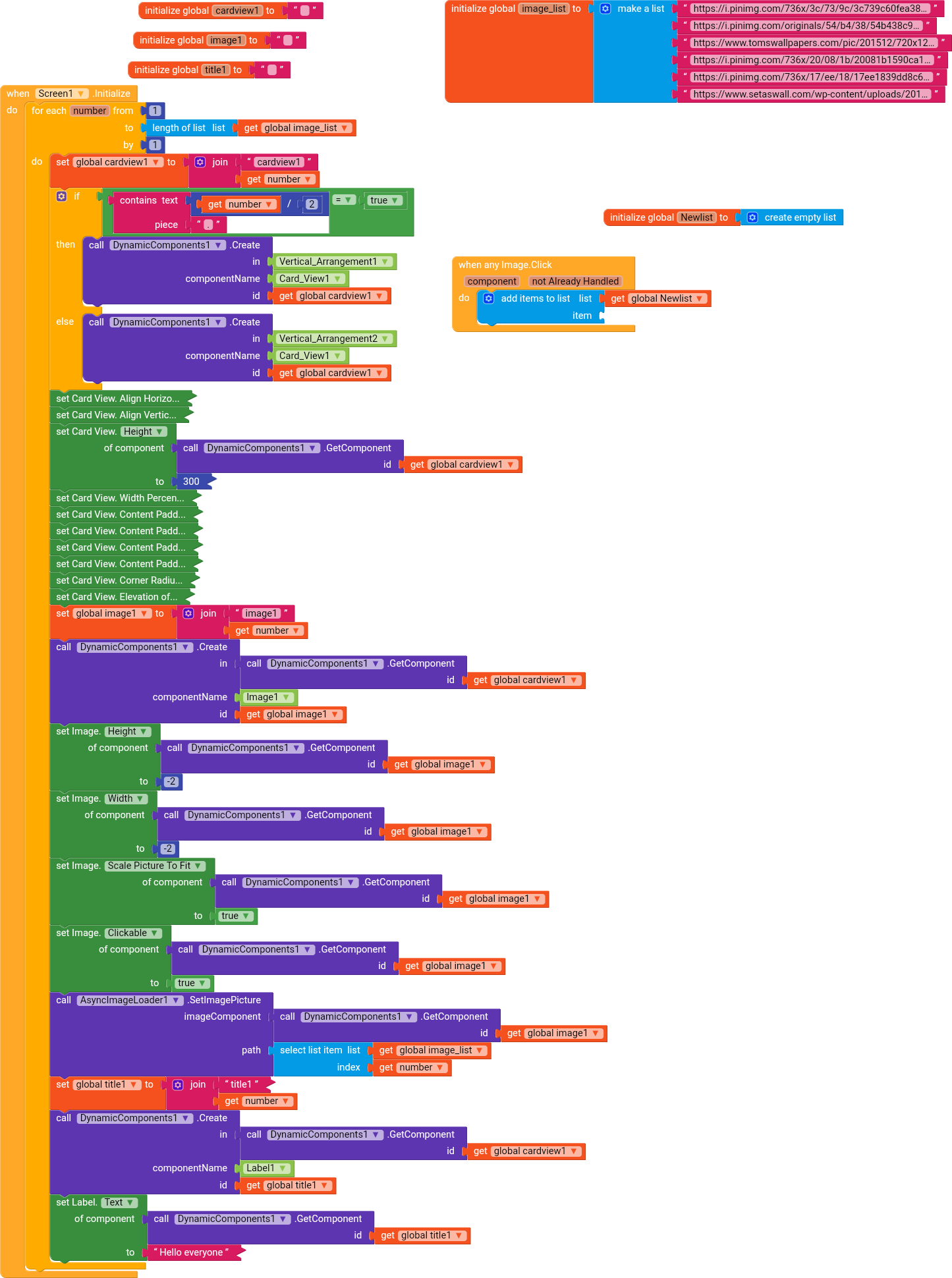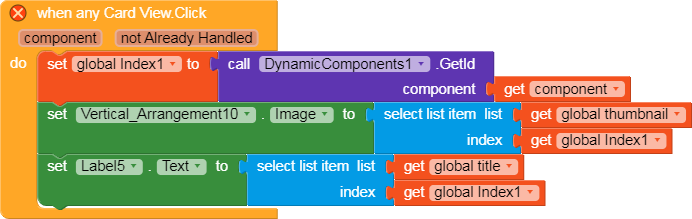I create a gridview app using DynamicComponents extension by using the following blocks