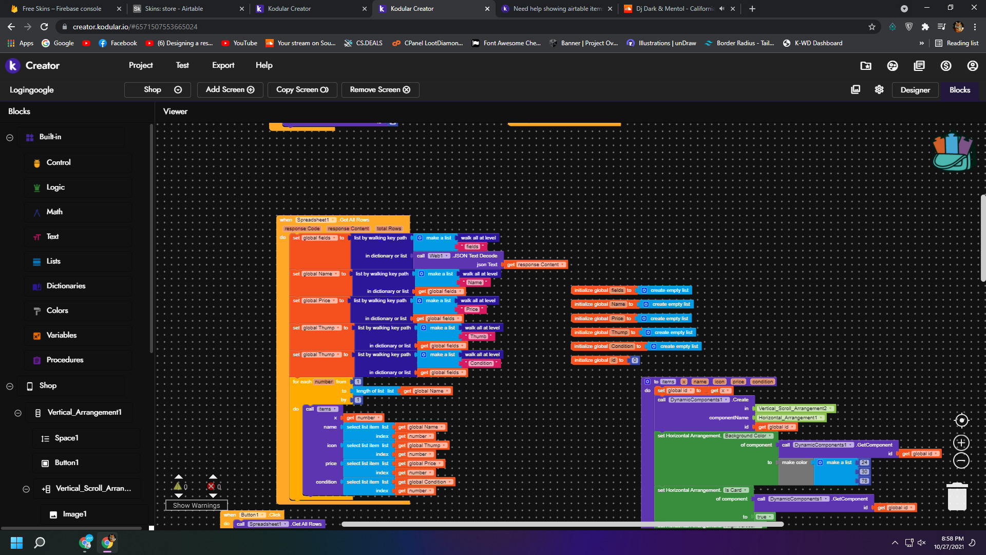In screen 1 mean, you need to create a separate global variable then must define blocks in such way how I did it for Name, thump and price. If you miss any one, you won’t get data.