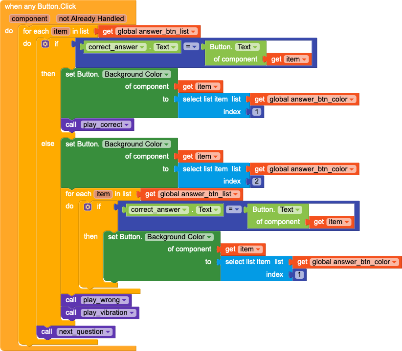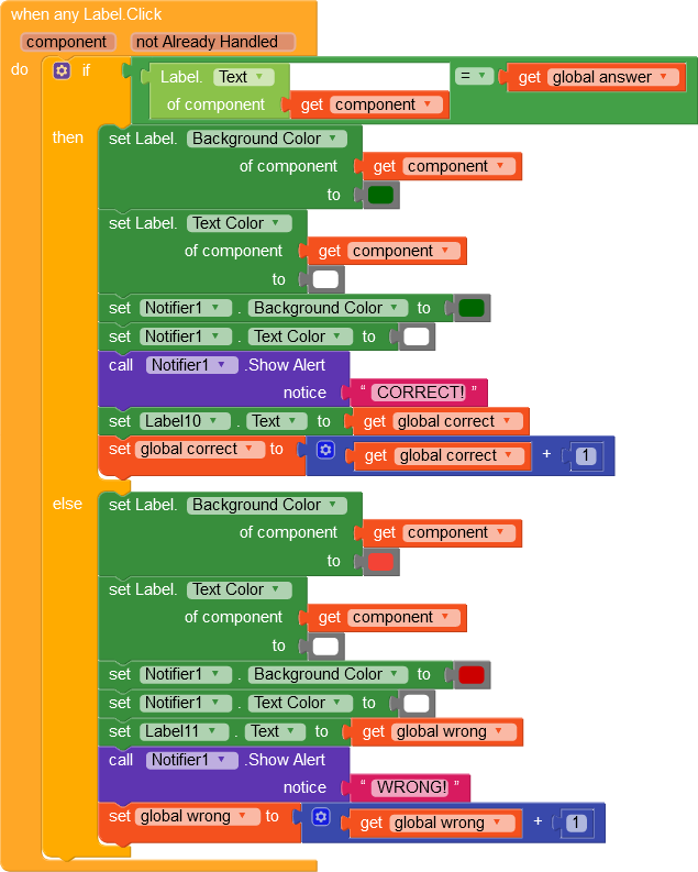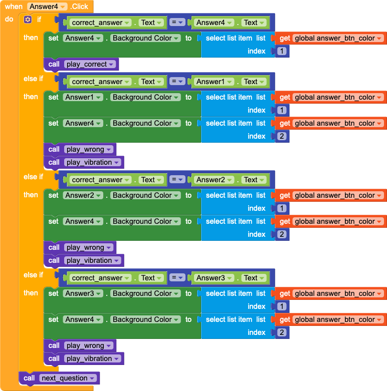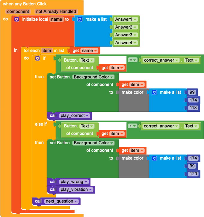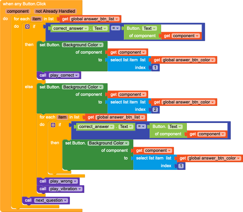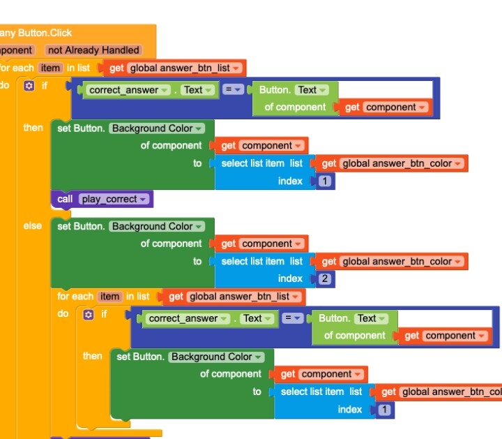 And I can’t change the color of the right answer button when I click on the wrong one.