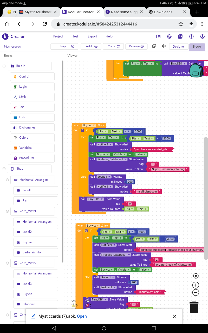 Can anybody suggest me, i am confused how should i use tiny db to store that image, after i purchase the character from store, it comes on my inventory but it dissappears after i reopen app again, any way to slove plz guide me i don’t know how to use tiny db i even read the guide on how to use but can’t find a way to use to store the image on inventory