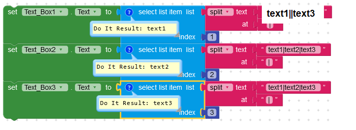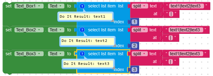 I have a string with 3 words separated by a symbol “|” . I need to split this string and put it in 3 textbox. I’ve already researched and I’ve been racking my brains for 2 days, so I turned to the community!