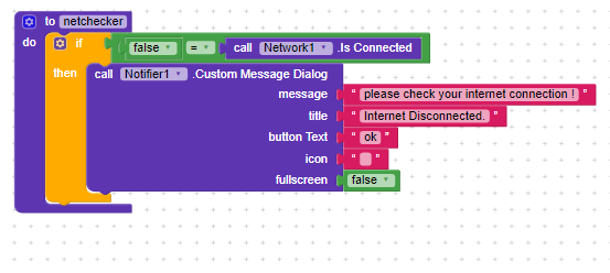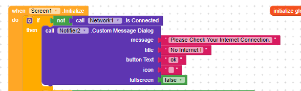 but when i try apk in mobile without internet connection my application opens for 2 seconds and crashes and i see application crashed error. but when i try to open the app with internet connection everything is working as expected. so i think the problem is in component because it should show the message dialog which is not showing or am i doing something wrong ?