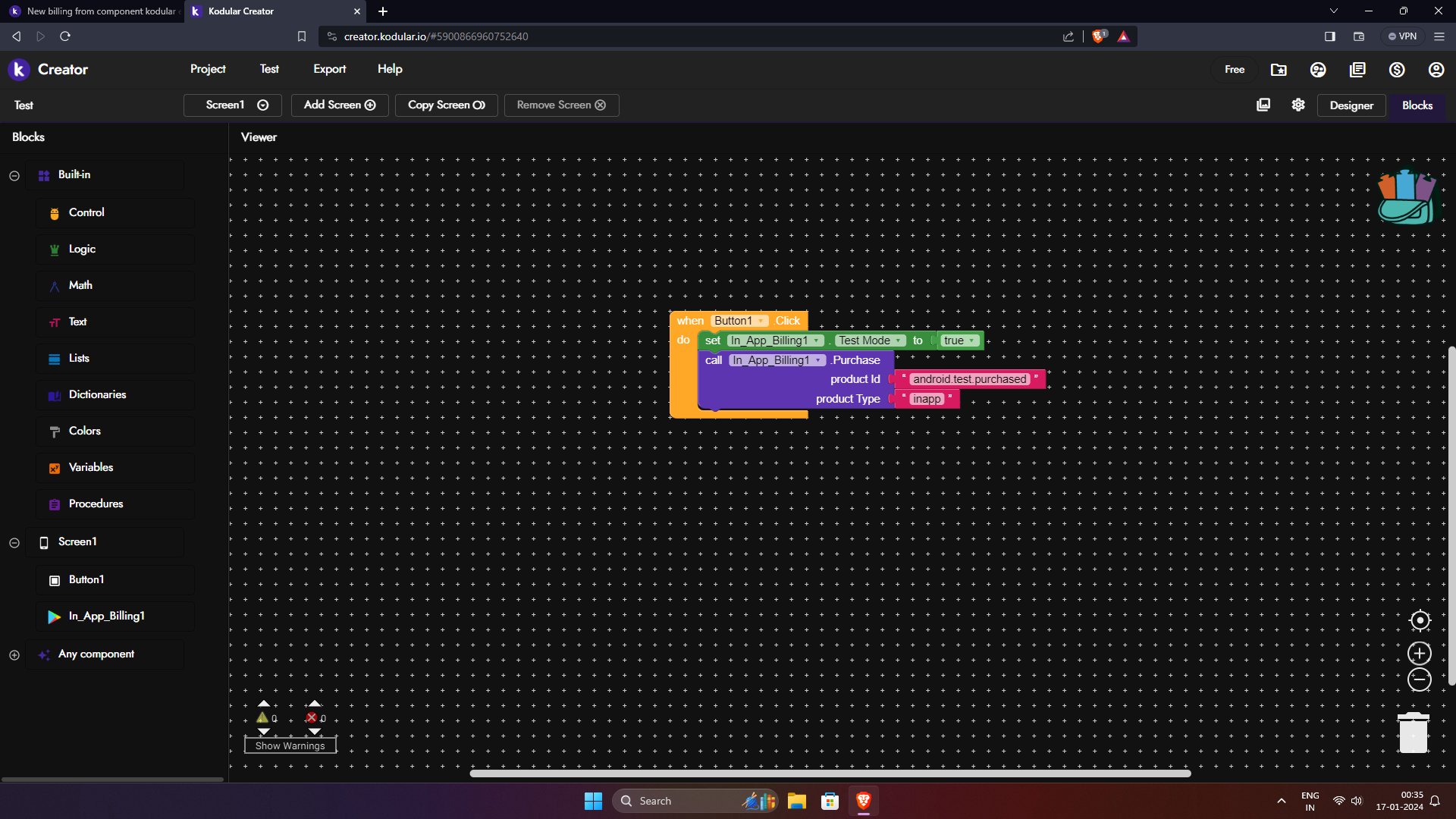 call to ‘com.google.appinventor.components.runtime.Billing.Purchase(java.lang.String)’ has too many arguments (3; must be 2)