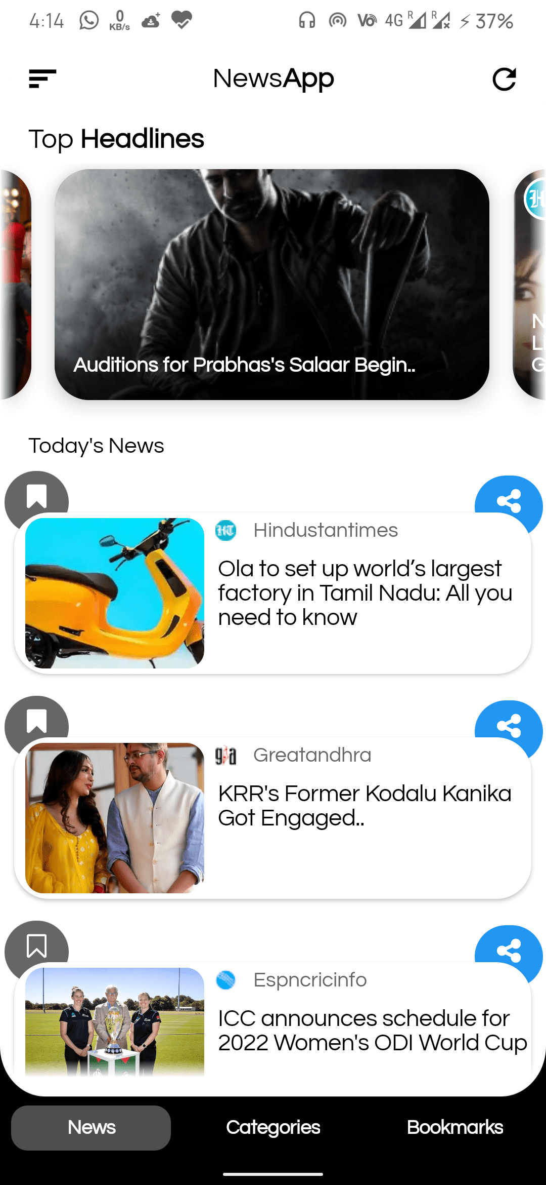 On the other hand if you want to use your own newsapi api, then I can sell both apk as well as aia. And because you are using your own api here, it will cost less.