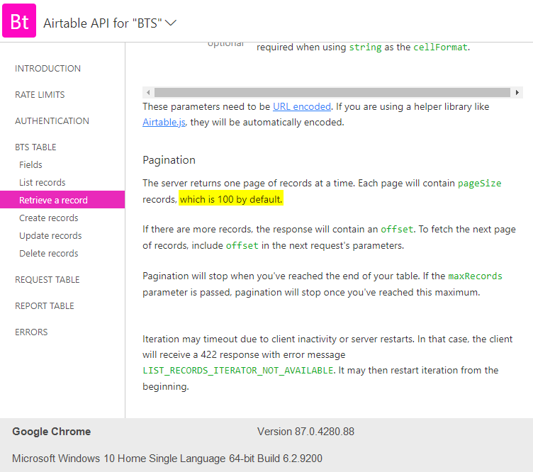 “The Standard API limits GET requests to 100 records. To get more records, you must submit multiple requests with the page offset.”