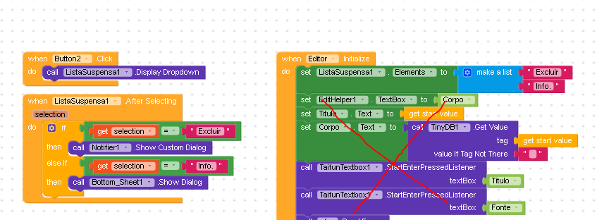 Hello, I configured these blocks for my application in Makeroid, but when I export to apk and testo the function on my cell phone, nothing happens! The elements are created, but the selection function is not working.