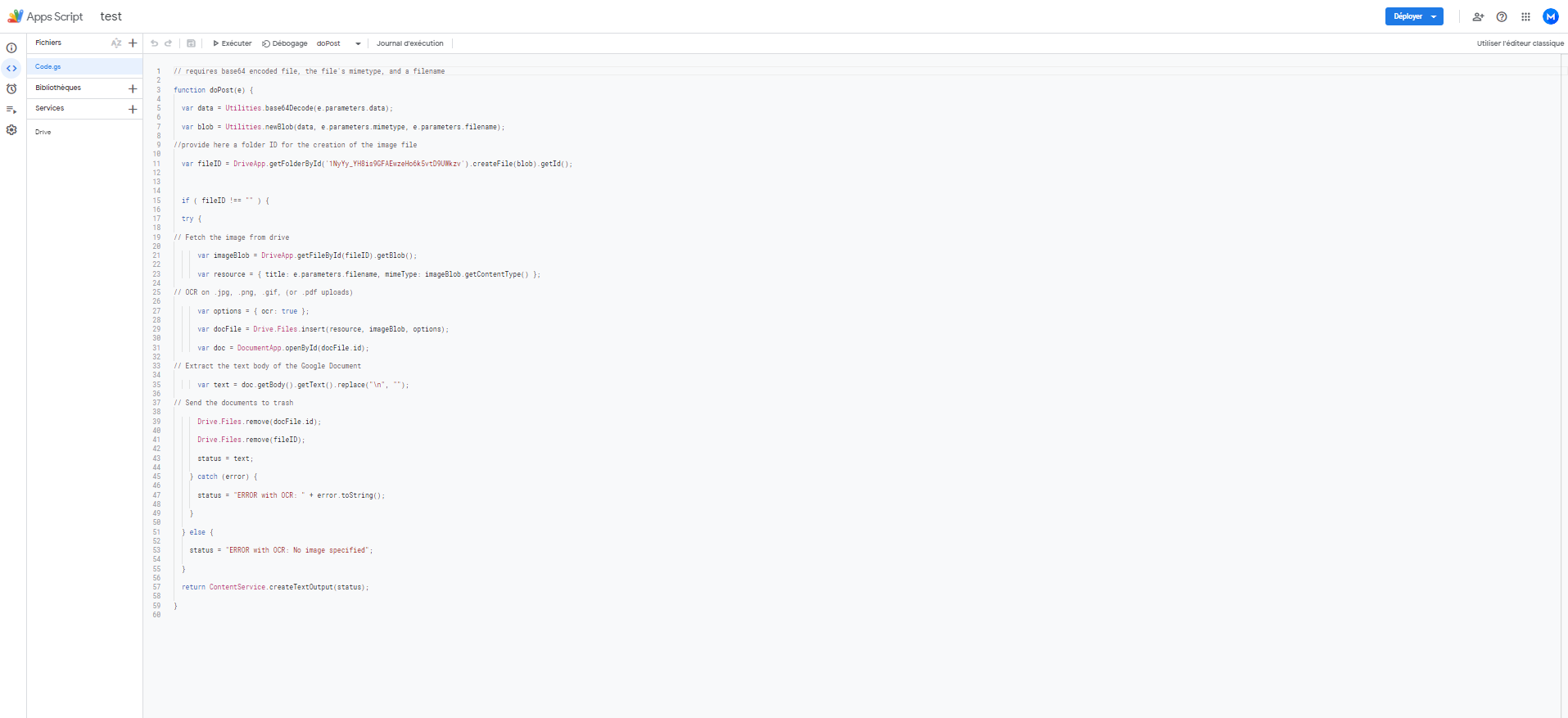 There are not photos in my google drive folder when I take a picture (I have selected “Drive API” in GoogleAPP Script")