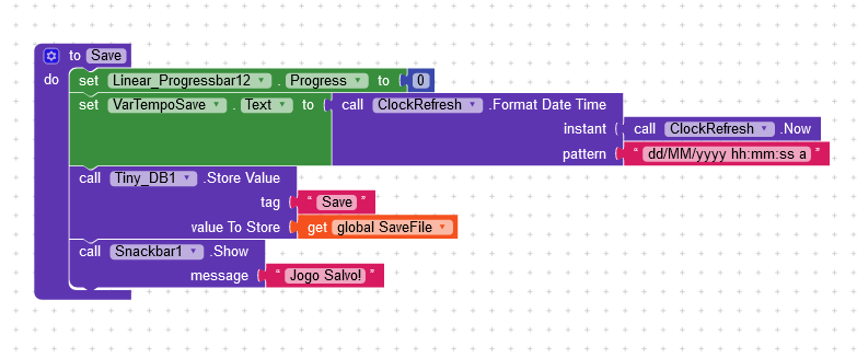 In this example i have a save system that saves information about my game, instead of repeating this 12 blocks 3 times (one when the user exit the app, one when the clock reach a limit, and one when i buy something on the store) i can simply create a procedure and transform this 12 blocks in just 1, saving a total of 24 blocks.