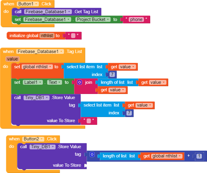 very simple @knkiranjoshi , When the screen initialize call the tag (phone number as a list) from the firebase also get it lenght using the block length of the list and retrieve the last tag(that is the length. Ie. While retrieve if it says length 7 mean retrieve the 7th list value using the block Select list item list Index7 and store that value in tinyTB.