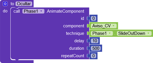This is a test app, the main app has another arrangements over and below the main one of this test app. If I don’t set the Aviso_CV card view to non visible after the Phase animation, there will be any problem? Is this animation equivalent to set visible to false?