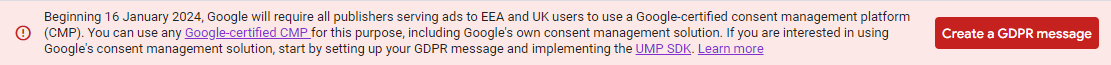 Google Admob shows a message that we have to add a GDPR message and implement UMP SDK.