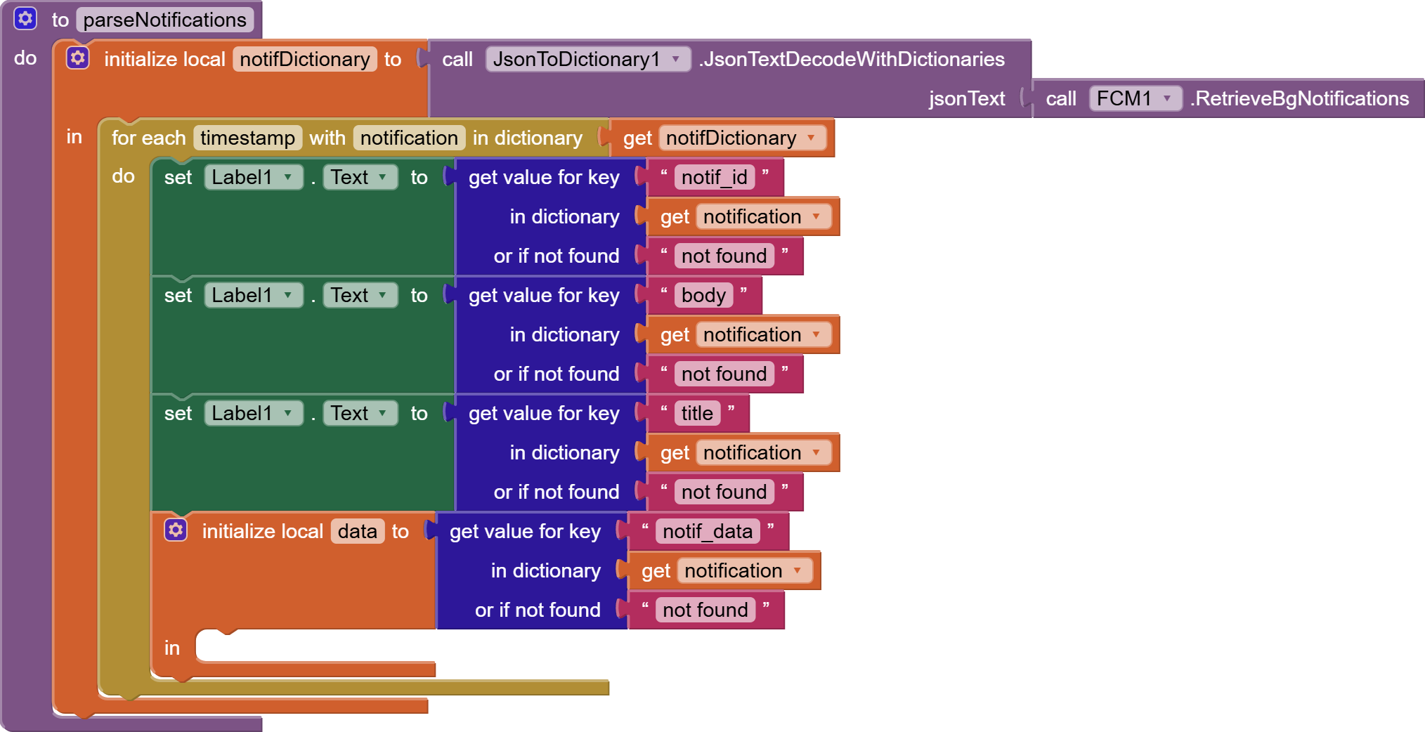 Hello, I send FCM notifications from esp8266 and through your extension on the app with Kodular I receive them. The notifications are received correctly, but now I would like to create a section where to display the notifications received, unfortunately I see them as the attached photo. How can I solve it?