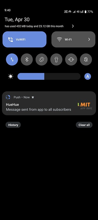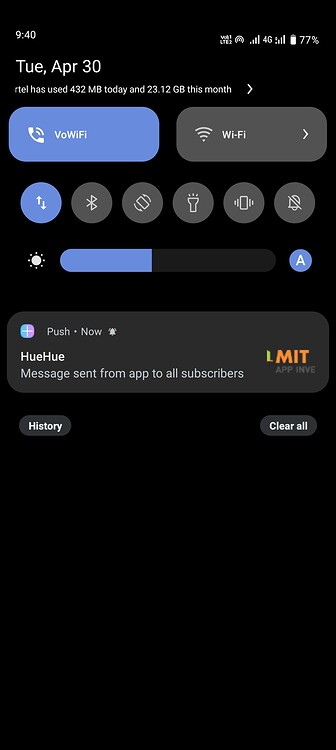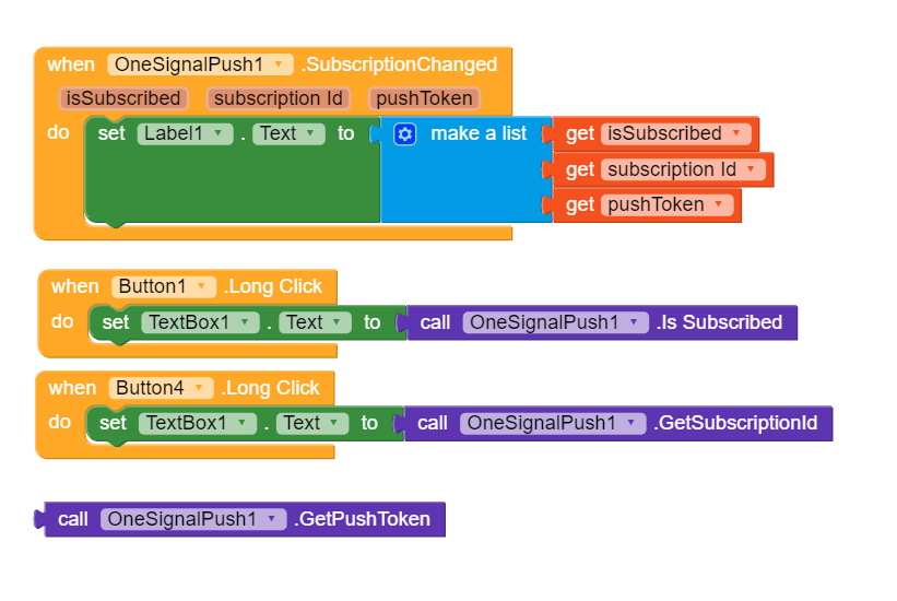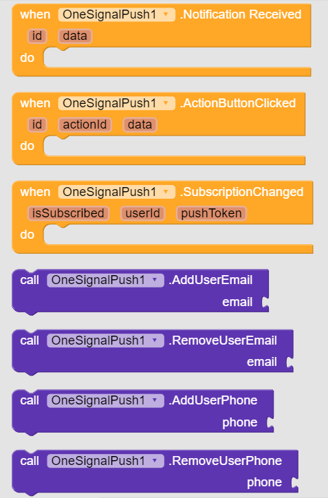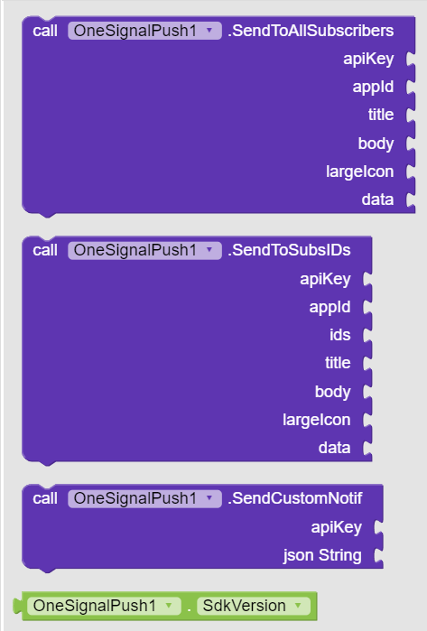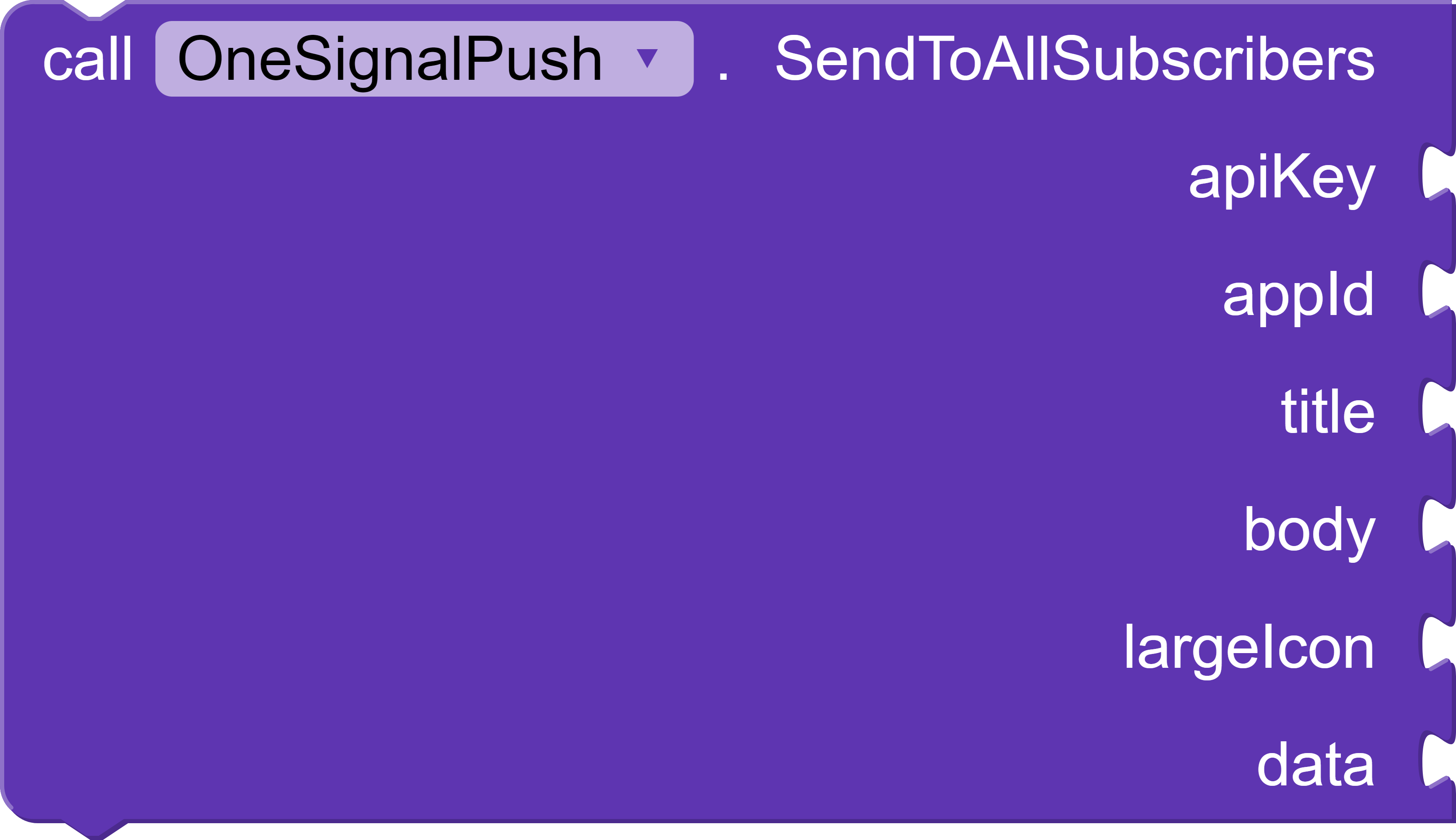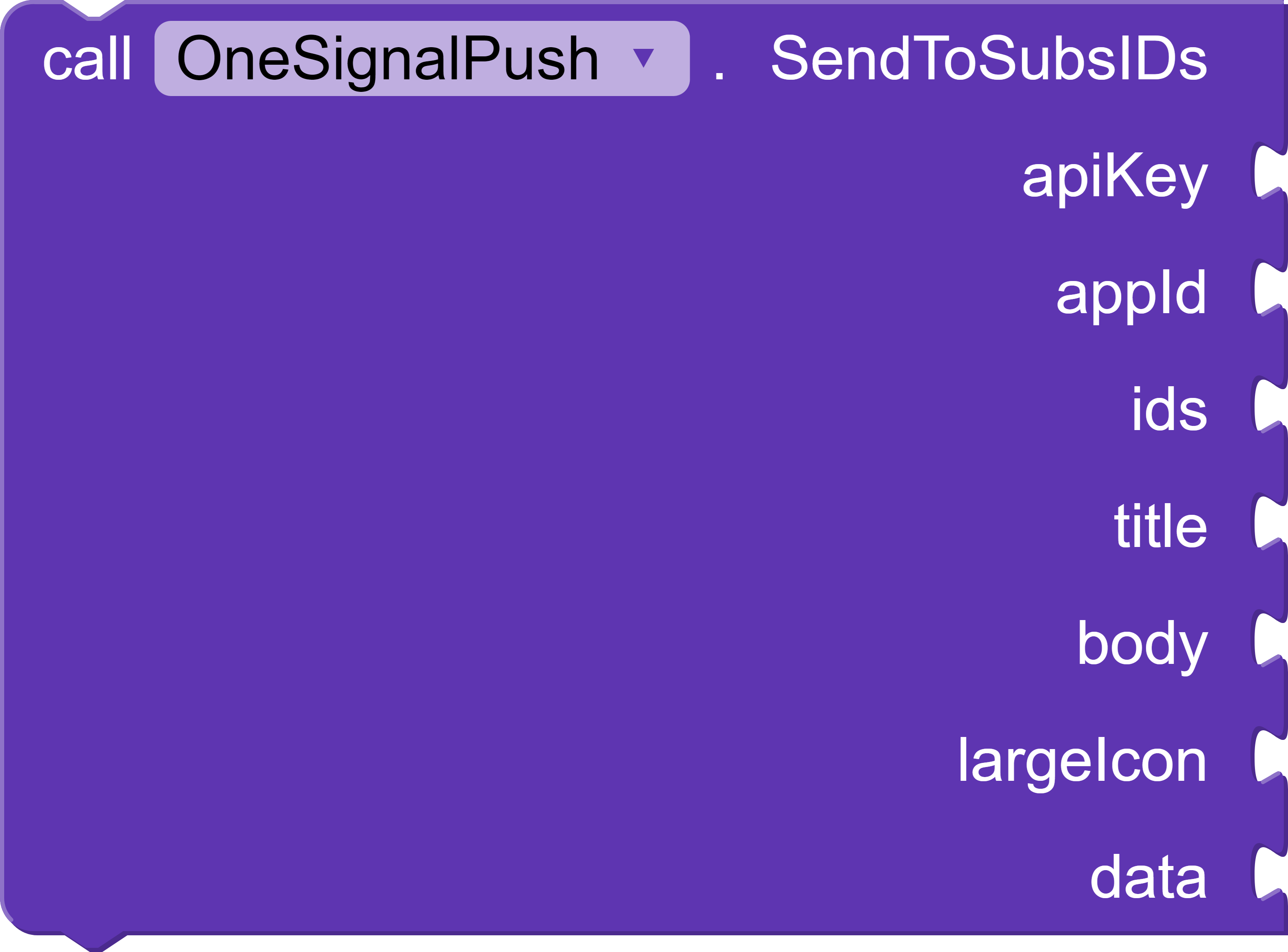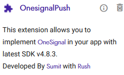 This extension ships with latest OneSignal SDK (5.1.23) . You can easily receive push notifications sent from OneSignal dashboard or from blocks in your app. You can send notifications to all subs and individuals. You can send a customized notification also.1. Overview