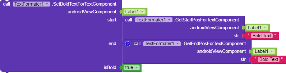 This block applies bold formatting to a portion of the text within a TextBox or Label.