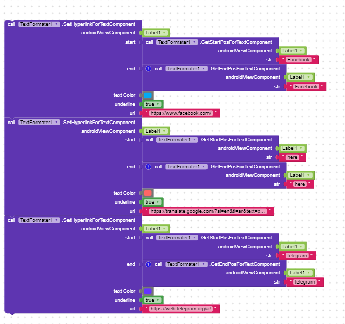 This block is a remarkable one that allows you to make a portion of the text within a TextBox or Label in an Android app clickable as a hyperlink and when you click on it you will redirected to the linked URL to the hyperlink text.Now you can add “Href” text like in HTML in the text with simple way.
