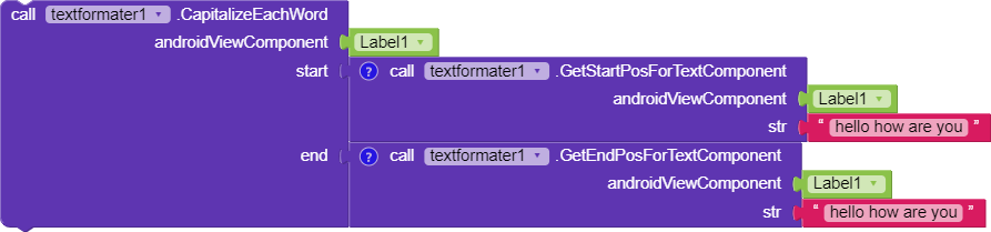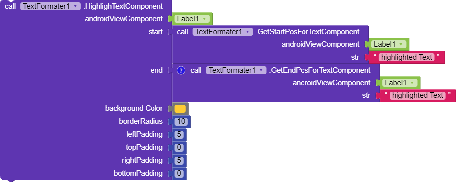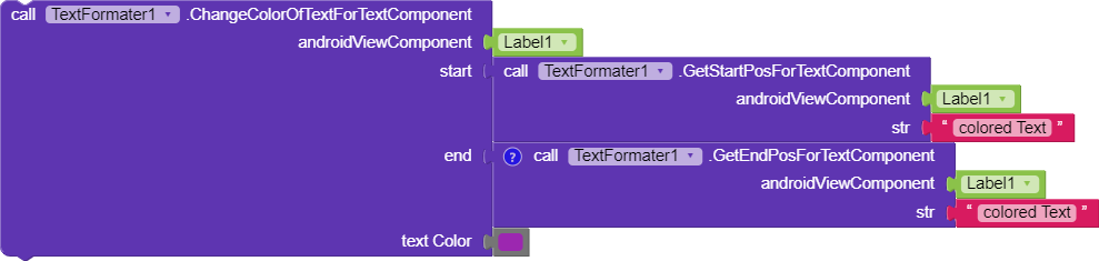 This block allows you to change the color of a portion of the text within a TextBox or Label to a specified color.Result: