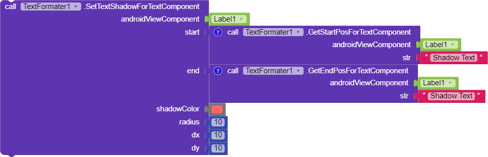 This block applies a shadow effect to a specified portion of the text in a TextView or TextBox.Result: