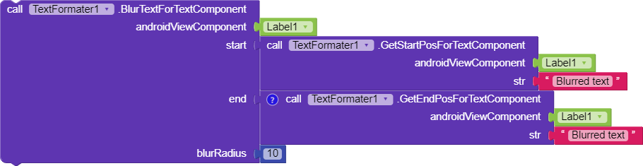 block allows you to apply a blur effect to a specified portion of the text within a TextBox or Label in an Android app.Result: