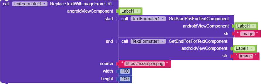 This Block replaces a portion of text within aTextVieworEditTextcomponent with an image loaded from image URL. It offers customization options for the image’s dimensions.Note: This method needs memory space because it stores images loaded from their URLs. >You can locate these images in the package’s cache folder.