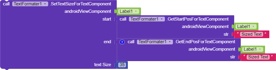This block sets the text size for a portion of the text within a TextBox or Label.Result: