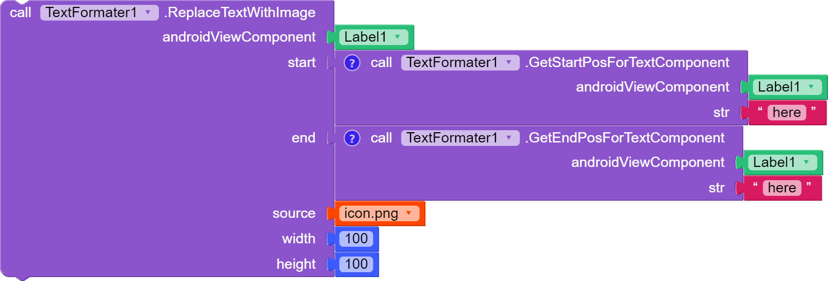 This Block replaces a portion of text within aTextVieworEditTextcomponent with an image loaded from either an asset or a file path. It offers customization options for the image’s dimensions.before: