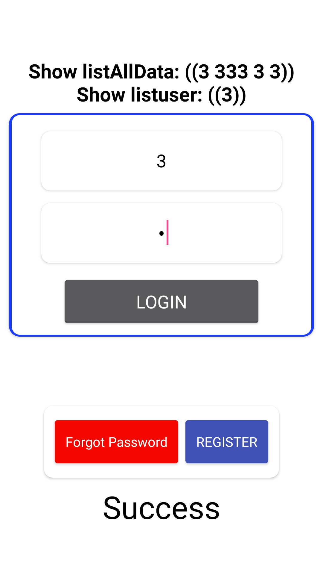Now I’m stuck to pass the login information the second screen. I’m not really sure what’s the reason. Actually, first time I hit the login button, it shows warning that the data (list length is 0). But when I try to hit it again it pass through the second screen (some times I have to hit the button more than 2 times).