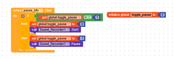 When I use soundrecorder.pause I don’t know how to resume recording ? I tried with theses blocks but It doesn’t work.