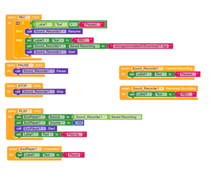 Therefore this block seems to be useless and should be removed or a Sound_Recorder.Paused event added. @Kodular