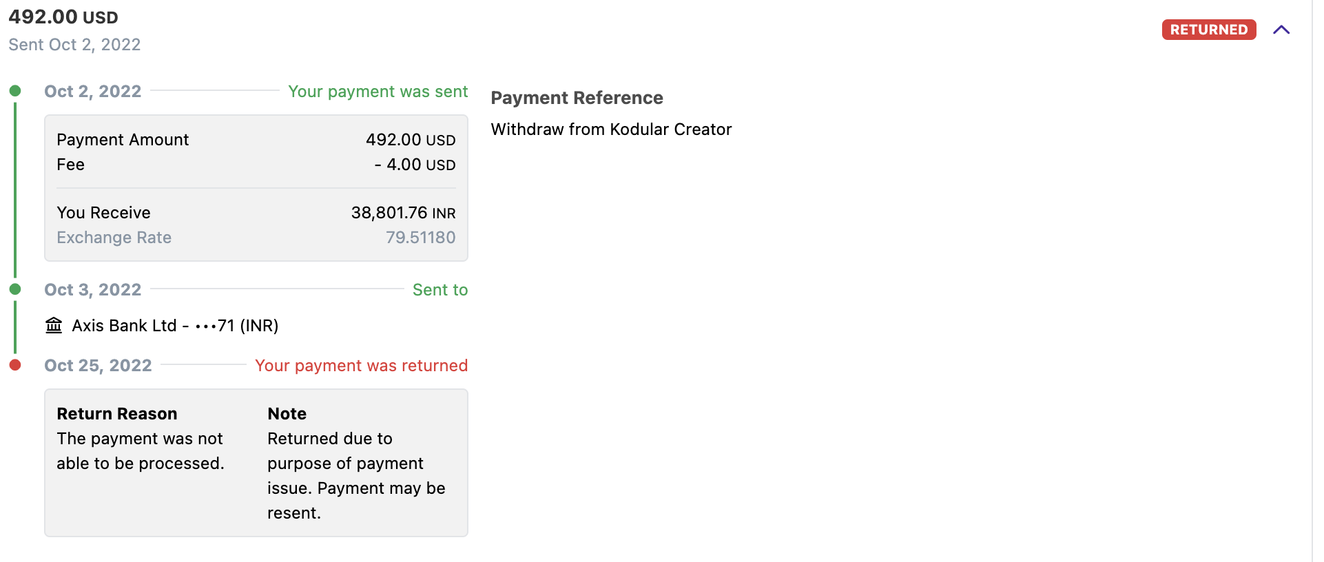 I did not received payment on Oct 26 , 2022 which is sent by kodular and also i am unable to contact kodular team to solve my issue can please look my issue and solve it @Diego i have attached screenshot my payment.