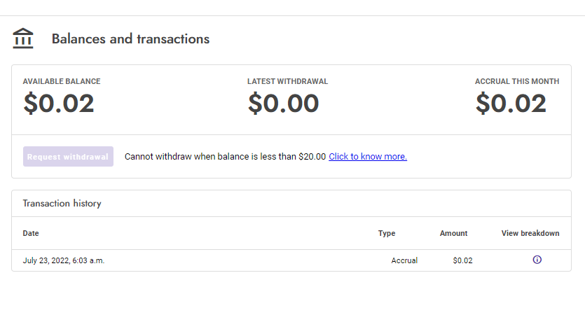 In August you will receive July earning ![]()
