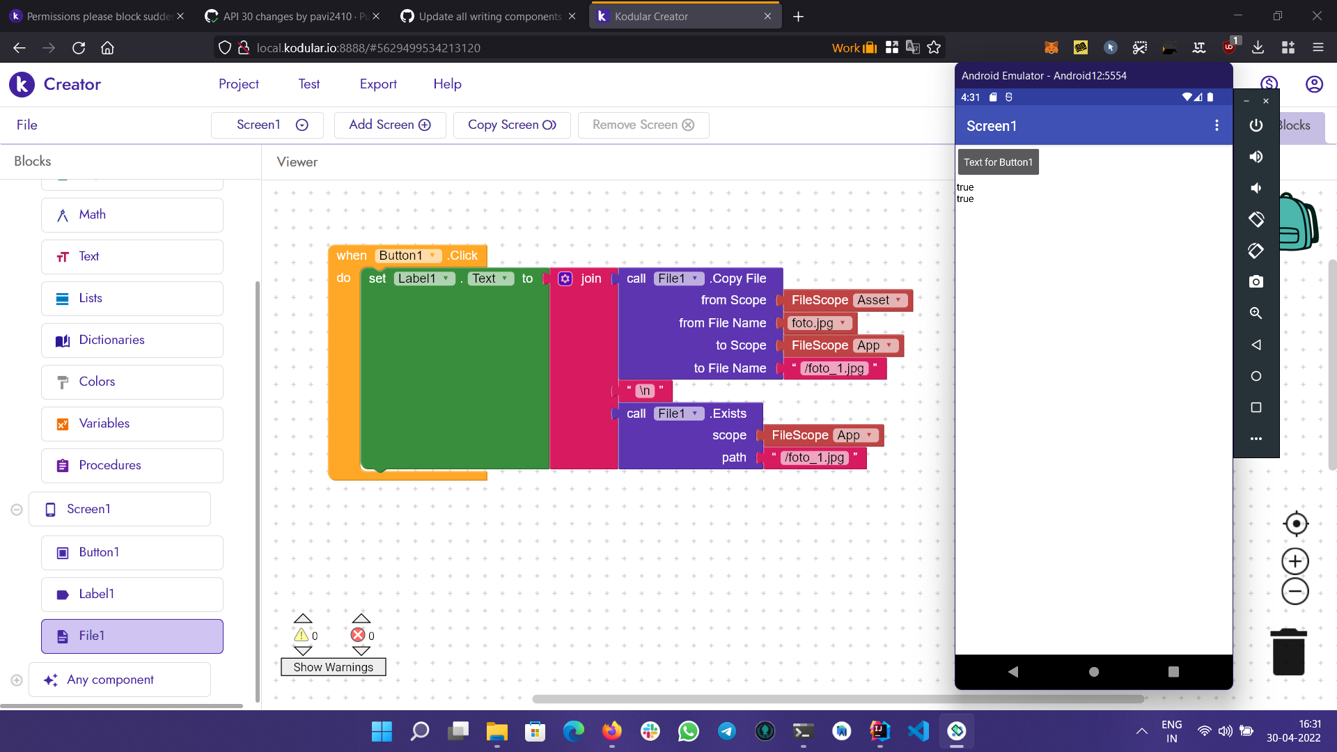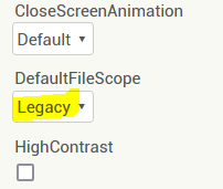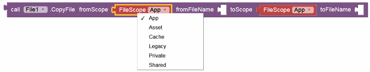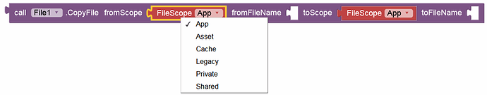 7. Implement scoped storage in accordance with SDK 30 requirements- Adds a new FileScope helper block for specifying what scope a file should be put in. The default is App specific storage (available on Froyo and up). THIS IS A BREAKING CHANGE. Existing apps that need access to files outside of the app-specific storage should switch to using the Legacy scope, which provides the old behavior. Existing curriculum and tutorials should not be affected by this change if followed from beginning to end within a fresh project.