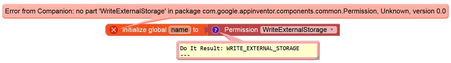 If → DefaultFileScope is not set to → Legacy in the Designer this also happens on Android versions between 4.4 and 9 (Android ≥ 4.4 [KitKat, API 19] and ≤ 9 [Pie, API 28]), because the maxSdkVersion for READ / WRITE is 18. See also here: ...