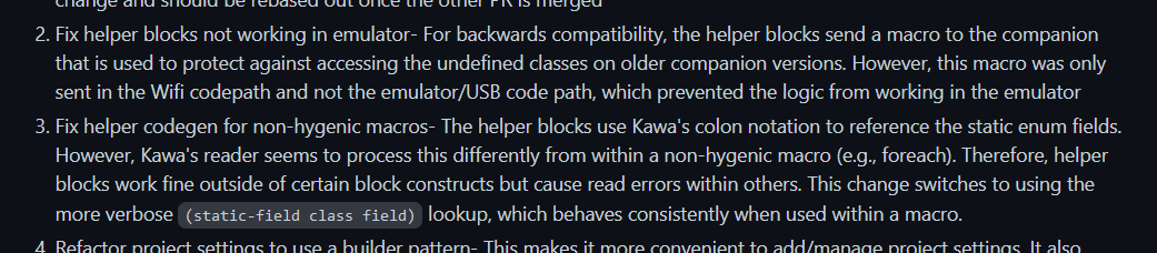 2. Fix helper blocks not working in emulator- For backwards compatibility, the helper blocks send a macro to the companion that is used to protect against accessing the undefined classes on older companion versions. However, this macro was only sent in the Wifi codepath and not the emulator/USB code path, which prevented the logic from working in the emulator