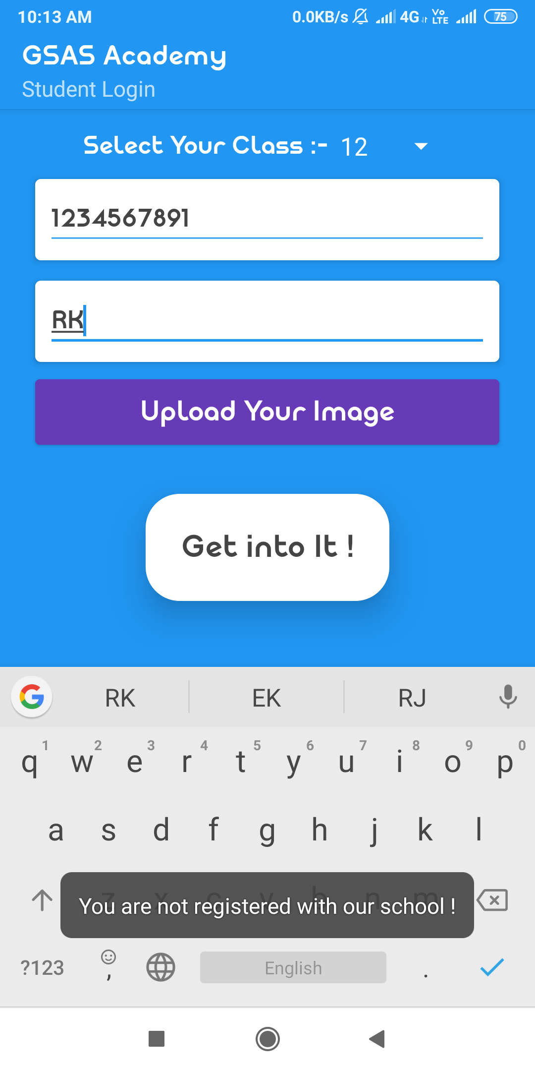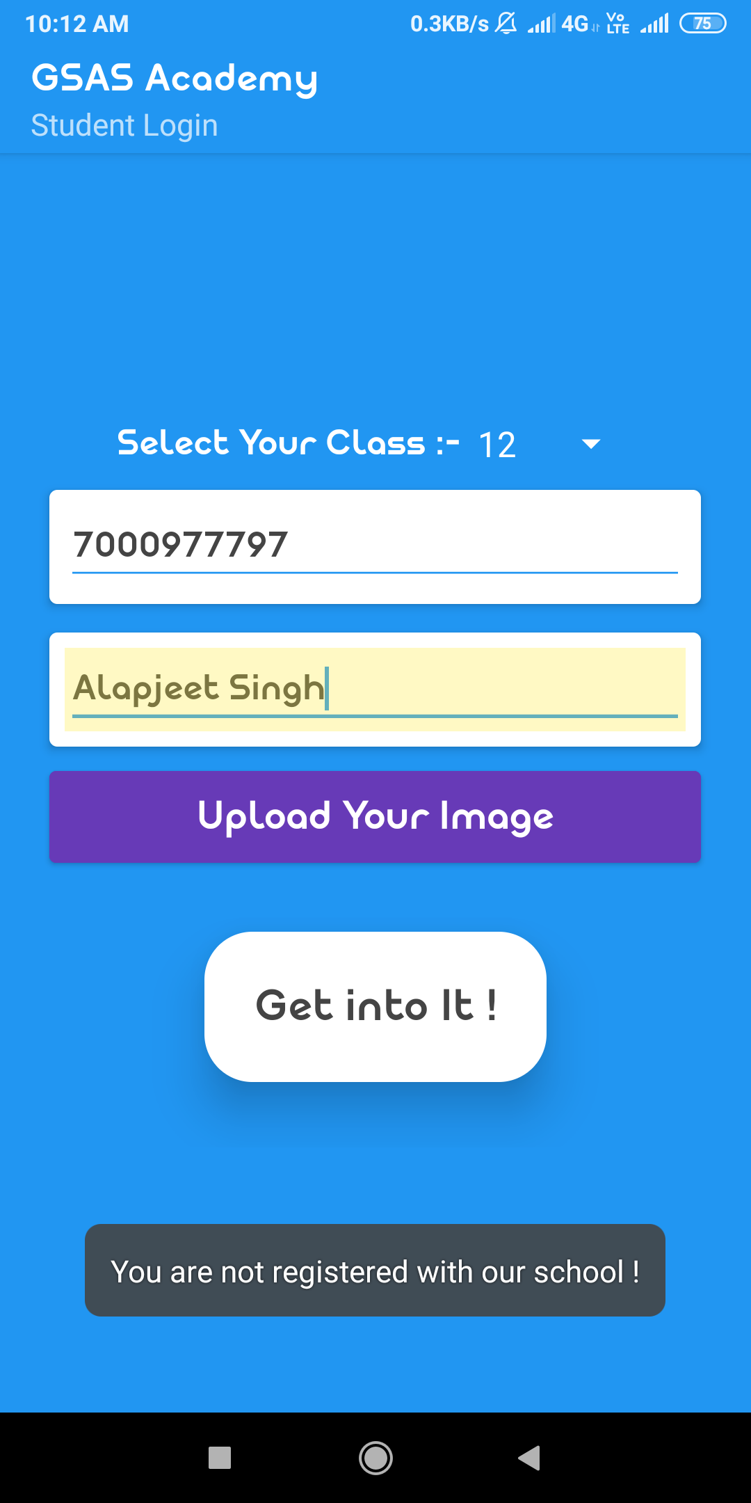 If you want to test this app then enter 1234567890 Number and Select class 10th Section B and If it says to enter OTP then enter 123456.