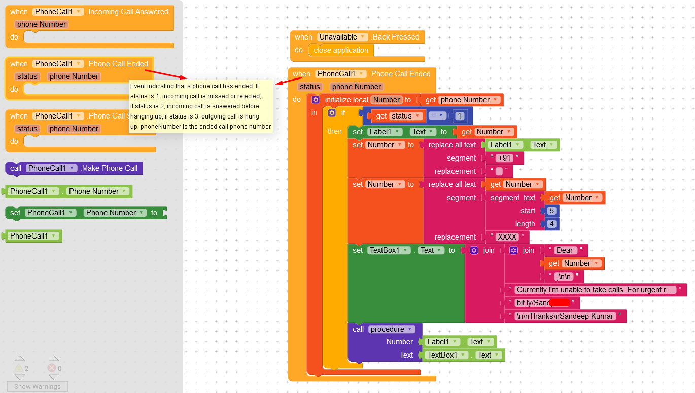 Please help me with the below block as I’m unable to records missed/Ended calls