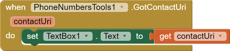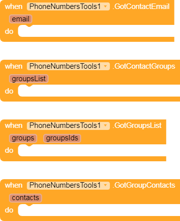 Nevertheless, itâs possible you could switch to version 1, where blocks were returning values directly instead of using an event block, you will just need to ask for the permission READ_CONTACTS