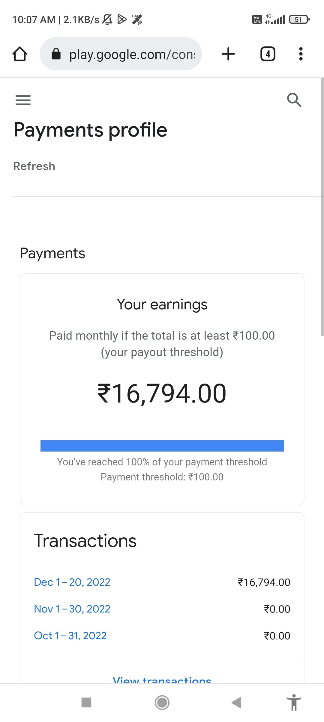 If you have opted for 15% fees program then Rs. 1,500 would be deducted from your Revenue as Google Play commission & Rs. 8,500 would be sent to your linked Bank account on 15th January 2023.