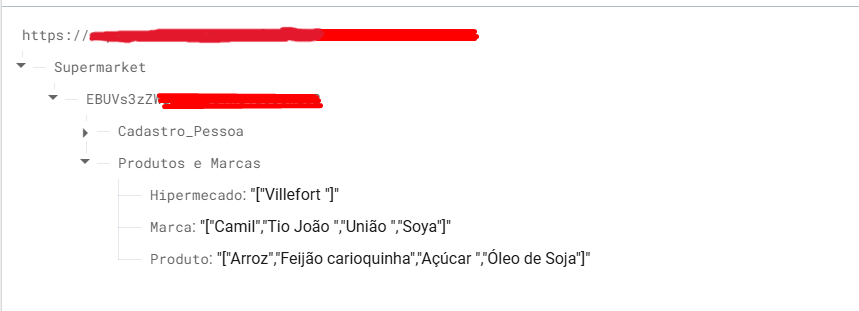 What you’re seeing is correct, for each object under EBUVs3zZ… you’re removing " ] [ and adding it to the list, so ["Arroz", "Feijão carioquinha","Açúcar ","Óleo de Soja"]