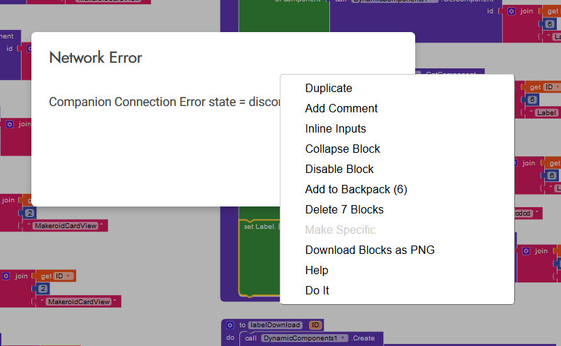 Companion failed message popup canβt able to be on top of right click option (on block). So only companion button will work. And all other buttons will not work.