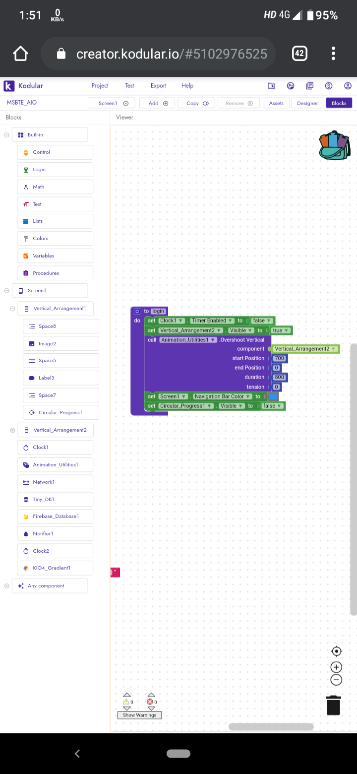 @shiva-sandupatla Ok. First make a login/register arrangement as you want. Then make sure when it is visible it remains at bottom od screen. Then make the arrangements visible to false. Set a timer of 1-2 sec and use animation utilities in utilities section. Blocks and design are below ![]()