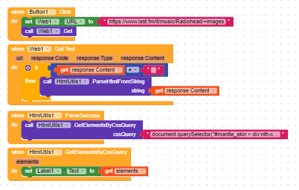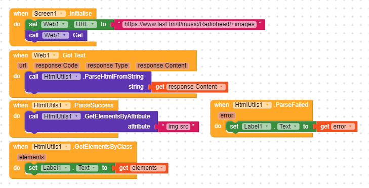 I have a problem with these blocks. My purpose is to get the images’ links of a site, but when I try to do that, I get nothing (both on companion and apk). I am sure I get the html because I can show it with the label, but the label does not show the html elements and neither does the “ParseFailed” error message. I’m not sure if the attribute is right, but in any case I don’t get errors… (I’m using HtmlUtils extension)