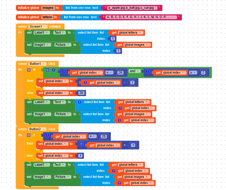 Hello Friends, i am making Alphabets app for kids i make 26 left buttons 26 right buttons & 26 images i am going to do all this on one screen. i did this