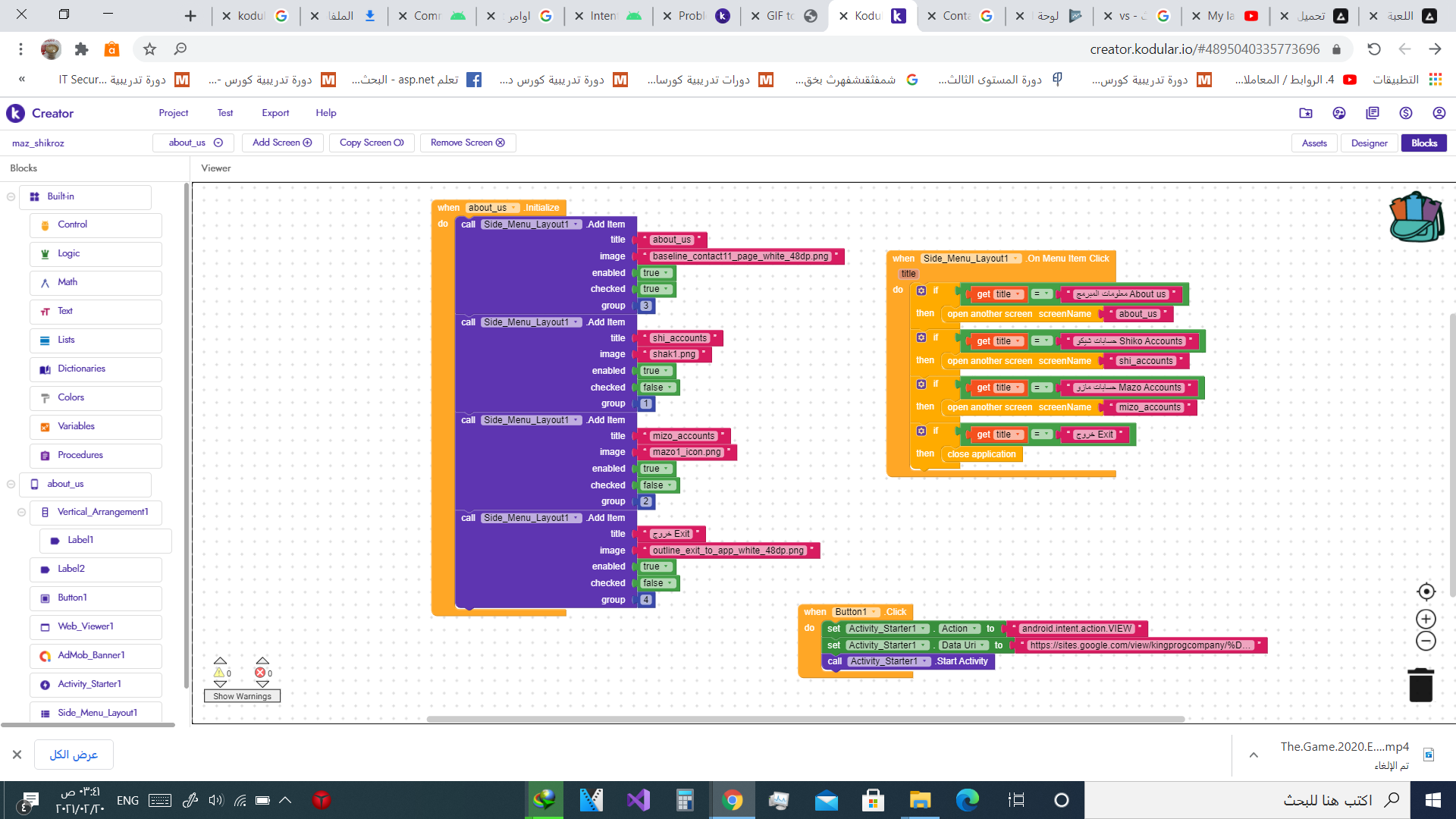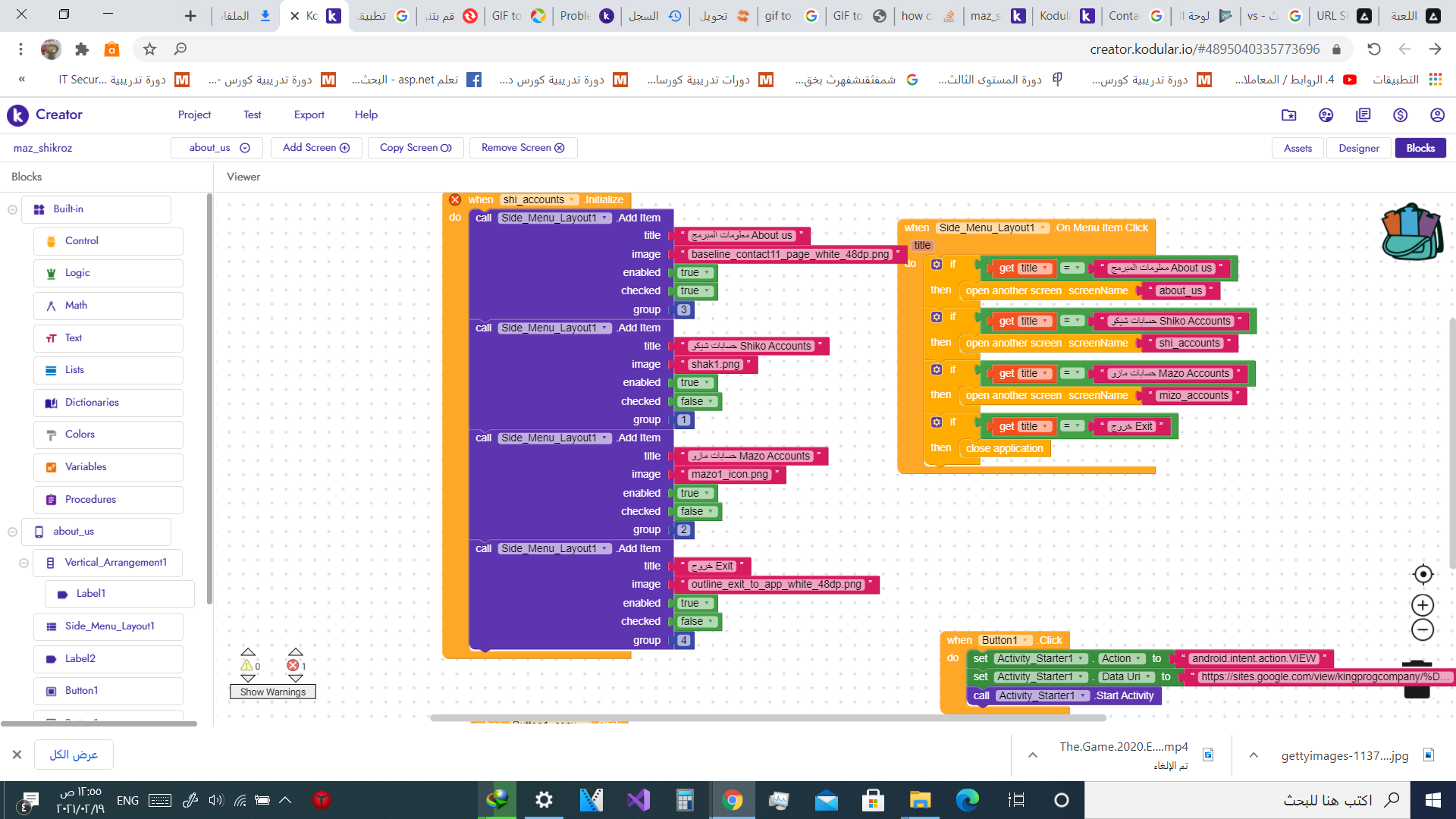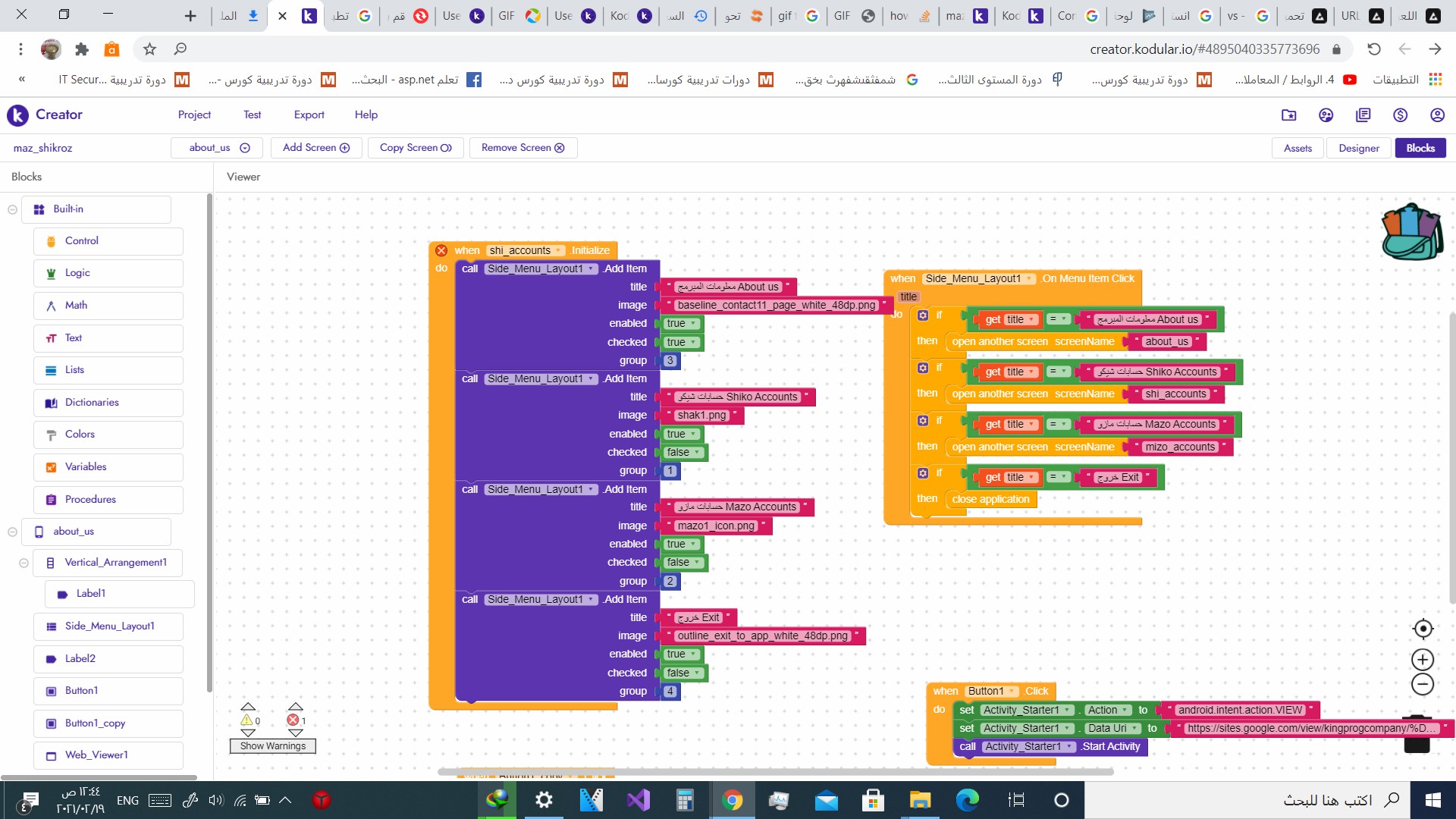 the side menu in about_us screen >the elements dont show