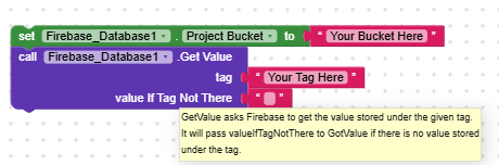 When registering a user, you need to explicitly save their data into Firebase. For example, when a new user registers, you should call StoreValue with a tag and a value. Later, when you want to retrieve it, you use GetValue with the same tag.