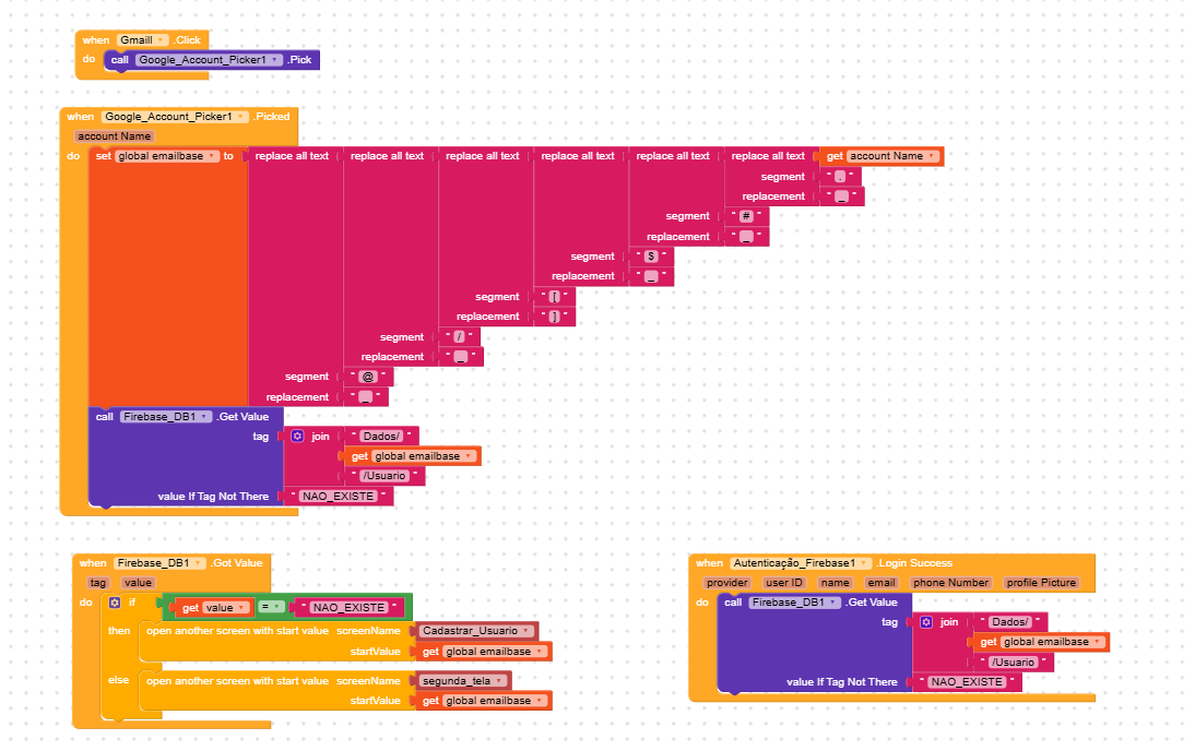 The problem is with the blocks, because when I use the login through Google, I am able to register things in Firebase.