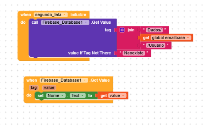 The second mistake is when I try to access something already saved in Firebase, I am not able to. This is the block where I have to access the player’s nickname and write it on the screen.